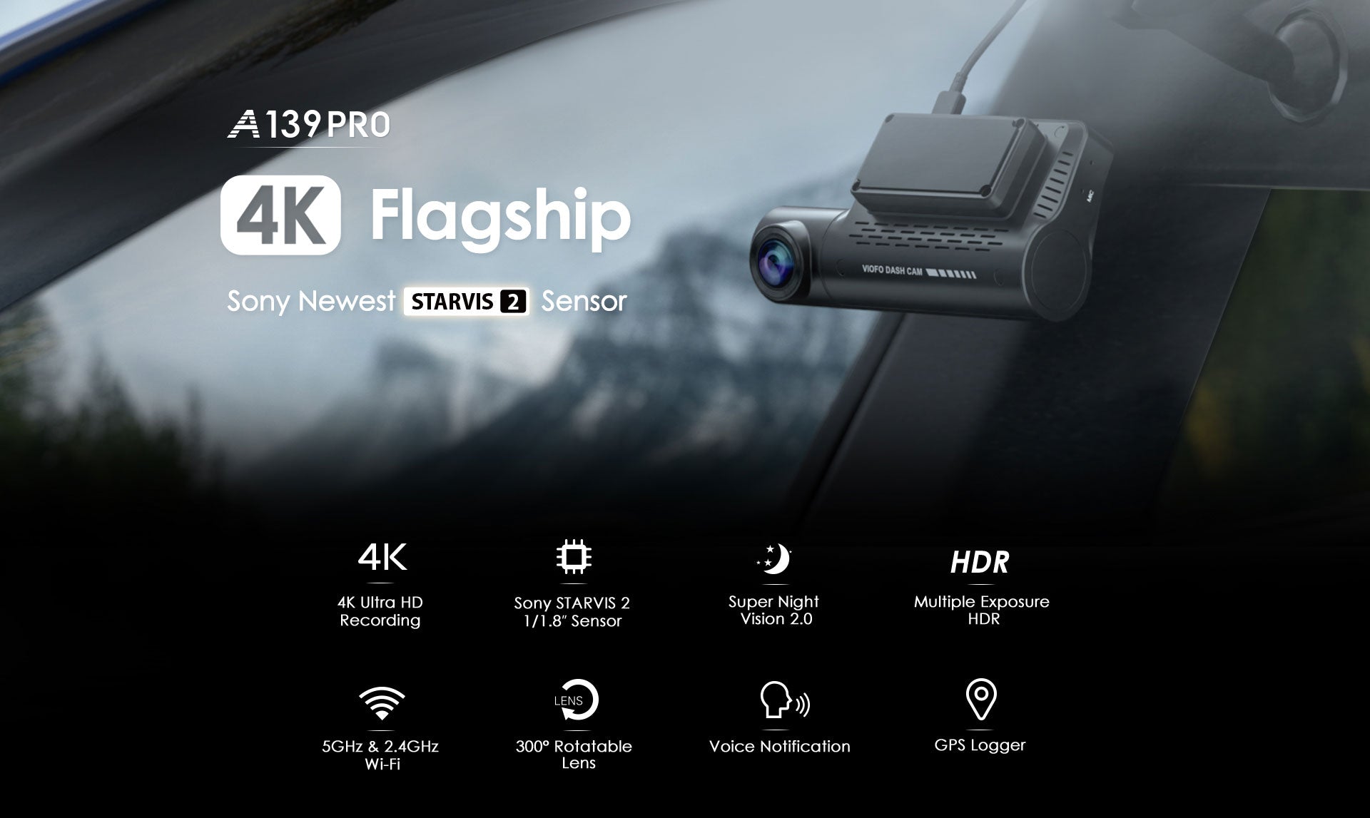 Night vision has always been a headache with all dashcams, but is highly optimized in A139 Pro. Image sensor type 1/1.8’’ with larger pixel brings in more light under same illumination level and 4K HDR tech balances over dark and over bright areas to help accurately restore 4K details recorded at night.