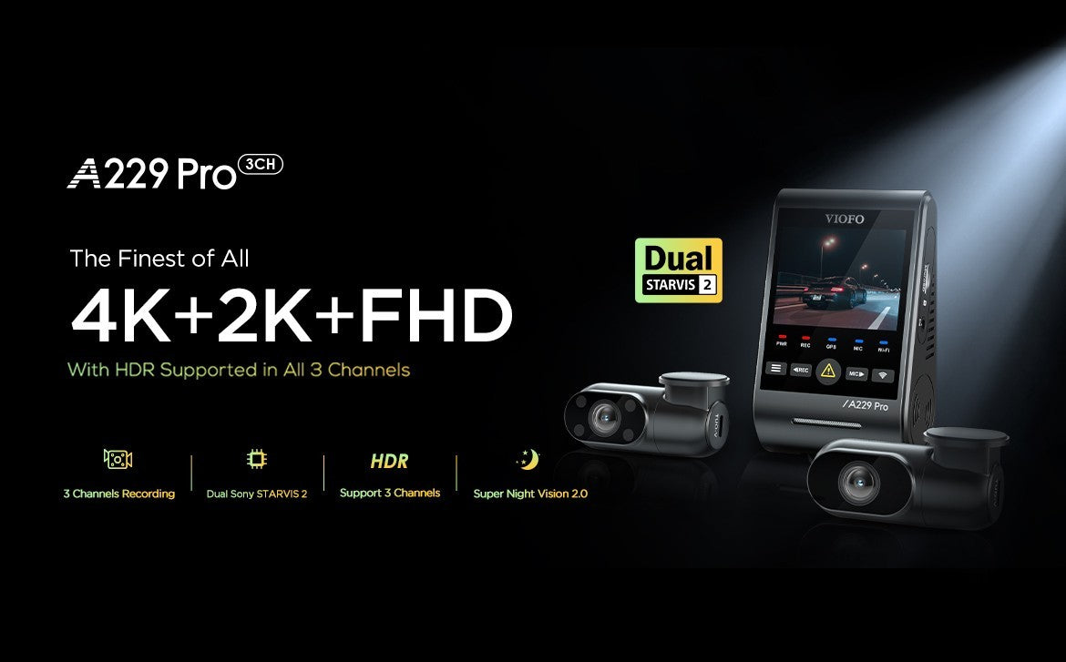 We are thrilled to announce the official launch of the unrivaled 4K+2K+1080P dash cam - A229 Pro! This new dash cam supports up to 3 channel recordings, all supporting HDR, aimed at capturing every moment with stunning clarity. The A229 Pro features state-of-the-art Sony STARVIS 2 technology in both front and rear cameras, along with an upgraded interior camera with HDR. This dashcam delivers optimal 4K+2K+1080P recording and promises an unparalleled driving experience.