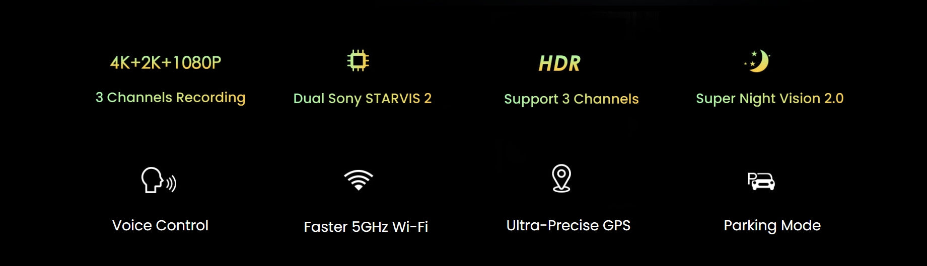 The front camera records in remarkable 4K with Sony STARVIS 2 1/1.8'' 8MP image sensor that packs in more pixels for greater clarity and detail, even in low light. The sensor provides a wider dynamic range in a single exposure than the STARVIS and supports 4K HDR tech, bringing low noise, eliminating motion blur, and revealing more details.
