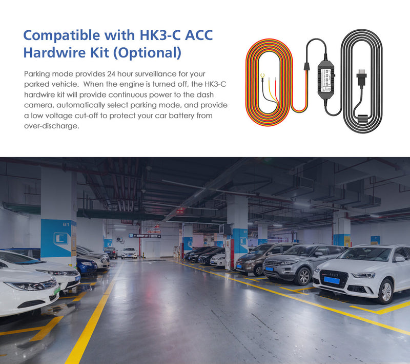 HK3-C Hardwire Kit is Type-C USB Port and is used in A139/A139 PRO Dash Camera.