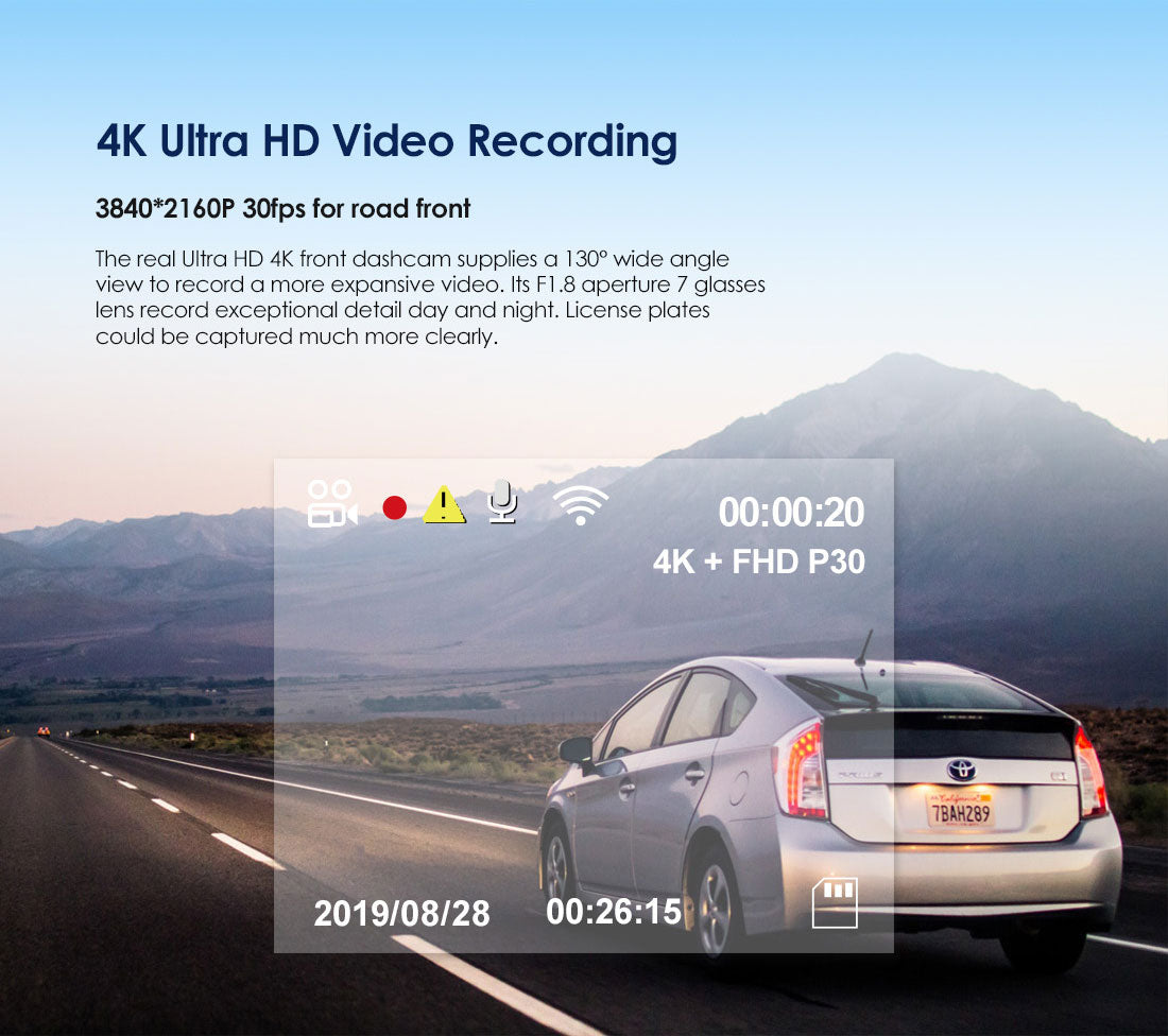 With ACC detection, the dash cam will switch to parking mode automatically if the vehicle engine is off, and switch back to normal recording after the vehicle engine is on.