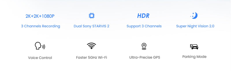 The rear camera records in upgraded 2K resolution with Sony STARVIS 2 1/2.8'' 5MP image sensor, which takes rear recording to the next level. The sensor features an impressive 2.5 times wider dynamic range than the STARVIS pixel of the same size, capturing exceptionally clear and sharp videos during daytime and nighttime recording.