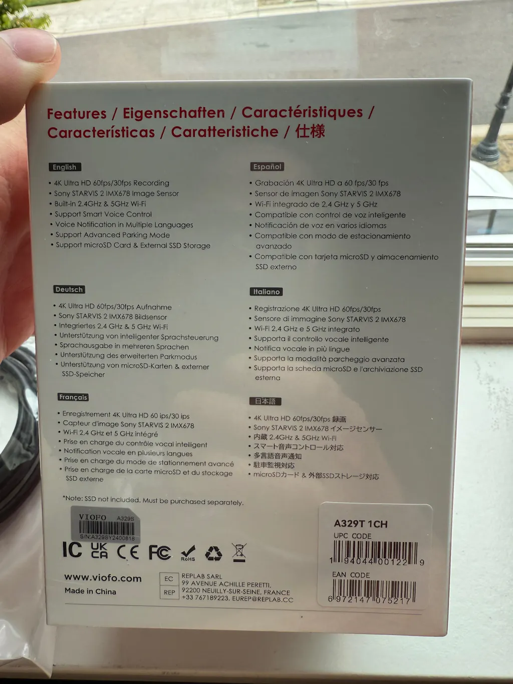 *External SSD is not included. We recommend using VIOFO Type-C SSD cable (optional).